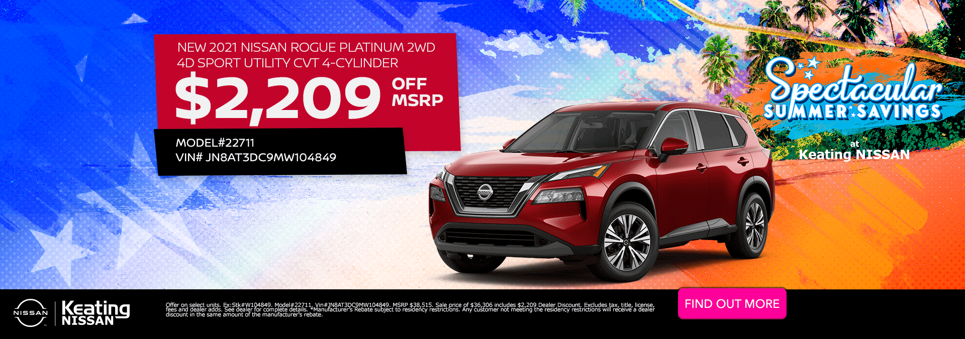 I upgraded from my Nissan Altima to a new Nissan Pathfinder Midnight Edition that will last years for my growing family. For a timely high-quality repair Keating Nissan recommends choosing 1st Choice Collision a Nissan Certified Collision Center. Sales Hours Sales Hours Monday 830 am - 900 pm.